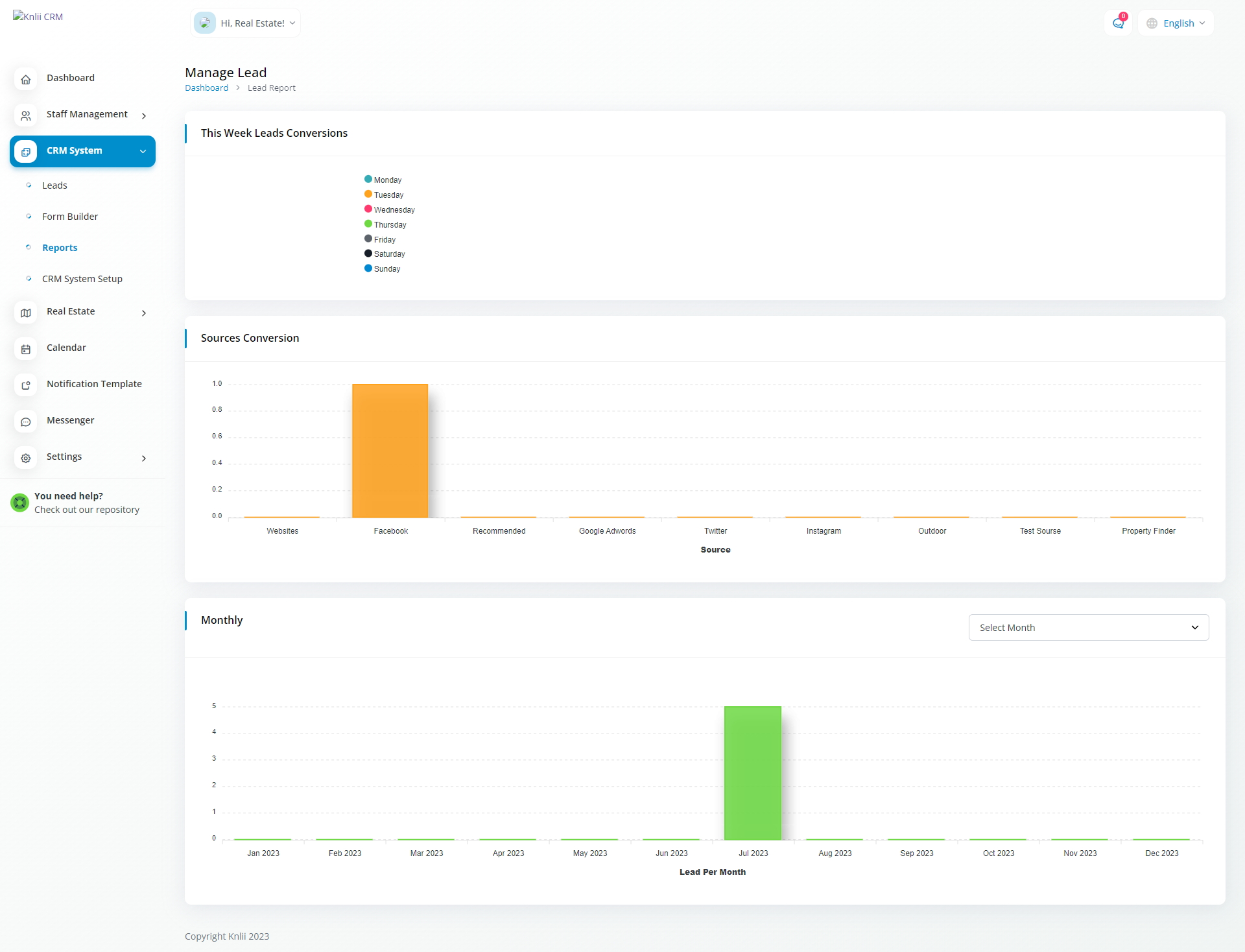Knlii - Real Estate CRM Real Estate company can manage properties and leads can assign calls to staff colander for next calls and appointments